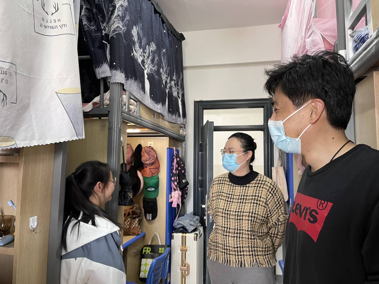 口腔医学院为在抗击疫情的这个关键阶段持续做好学生心理健康与思想工作,及时了解学生课余生活状态,掌握学生的思想动态,学院党总支书记周孟平、学生处心理老师江琳琳及2021级辅导员们于4月19日深入新桥校区宿舍走访慰问学生,关心了解同学们在生活、学习上的情况和需求。